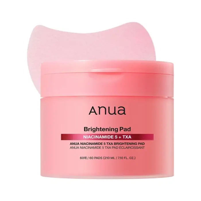 The Anua Niacinamide 5% + TXA Brightening Pad is a powerful treatment designed to brighten and even out skin tone. Formulated with 5% Niacinamide and TXA (Tranexamic Acid), this product helps to reduce pigmentation, dark spots, and discoloration while promoting a radiant and uniform complexion. These pads provide an easy and convenient way to exfoliate and brighten the skin without irritation.