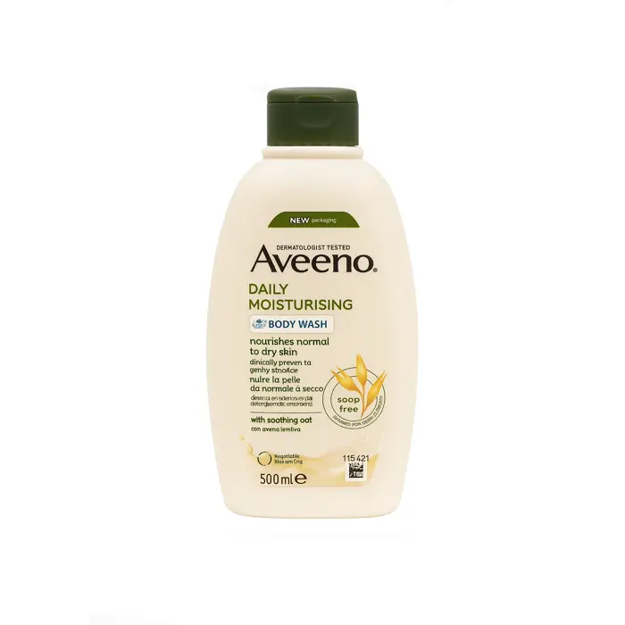 Aveeno Daily Moisturising Body Wash gently cleanses and nourishes normal to dry skin. Formulated with soothing oat, it helps maintain the skin’s natural moisture barrier while leaving it soft, smooth, and comfortable. The soap-free, dermatologist-tested formula is suitable for sensitive skin and ideal for daily use.