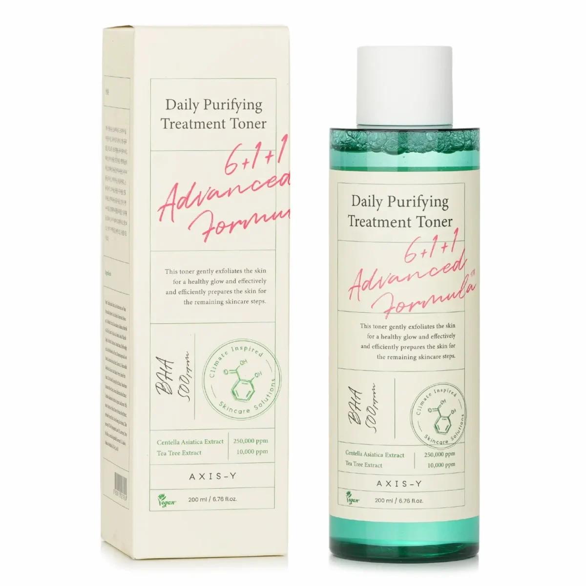 Infused with BHA (500 ppm), Centella Asiatica Extract (250,000 ppm), and Tea Tree Extract (10,000 ppm), this toner effectively removes dead skin cells, clears excess sebum, and unclogs pores while calming inflammation and redness.