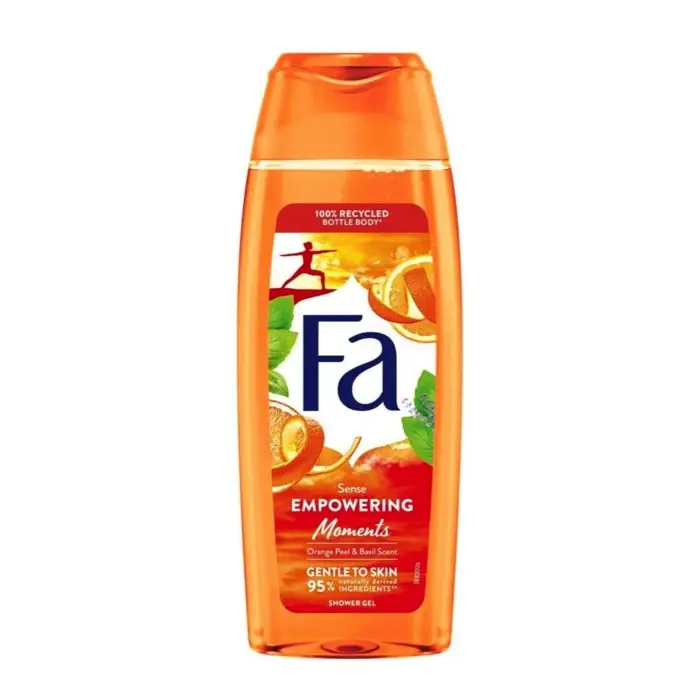 Fa Sense Empowering Moments Shower Gel combines the refreshing scents of Orange Peel and Basil to create an invigorating shower experience. Made with 95% naturally derived ingredients, this shower gel gently cleanses the skin while delivering a vibrant and energizing fragrance that lasts. The formula is gentle on the skin, leaving it feeling soft and refreshed. The 100% recycled plastic packaging makes it an eco-friendly choice for your daily routine.