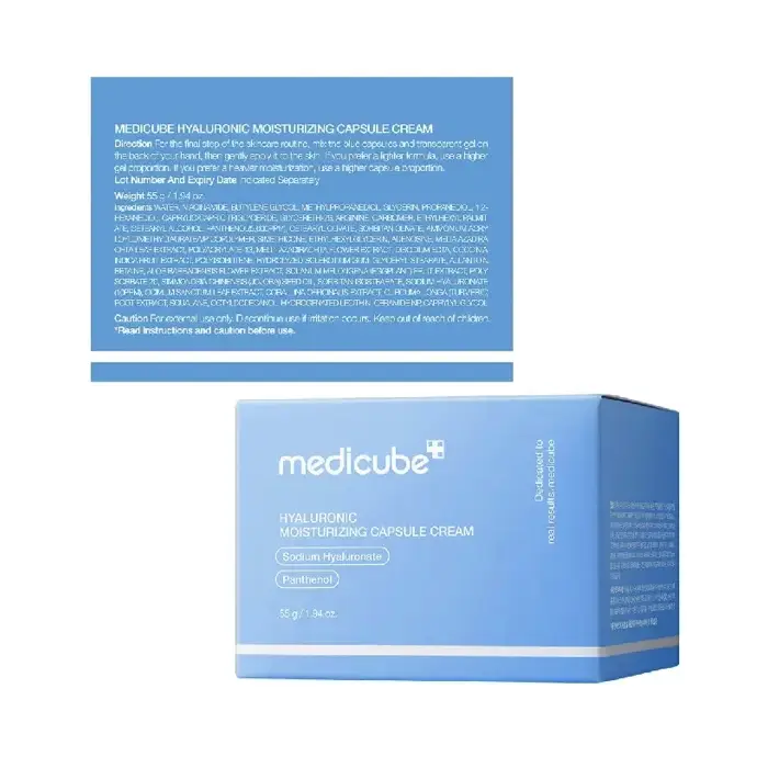The Medicube Hyaluronic Moisturizing Capsule Cream is a deeply hydrating cream designed to lock in moisture and restore skin elasticity. Formulated with Sodium Hyaluronate and Panthenol, this cream provides long-lasting hydration, improves skin texture, and helps soothe and protect the skin, leaving it soft, smooth, and glowing.