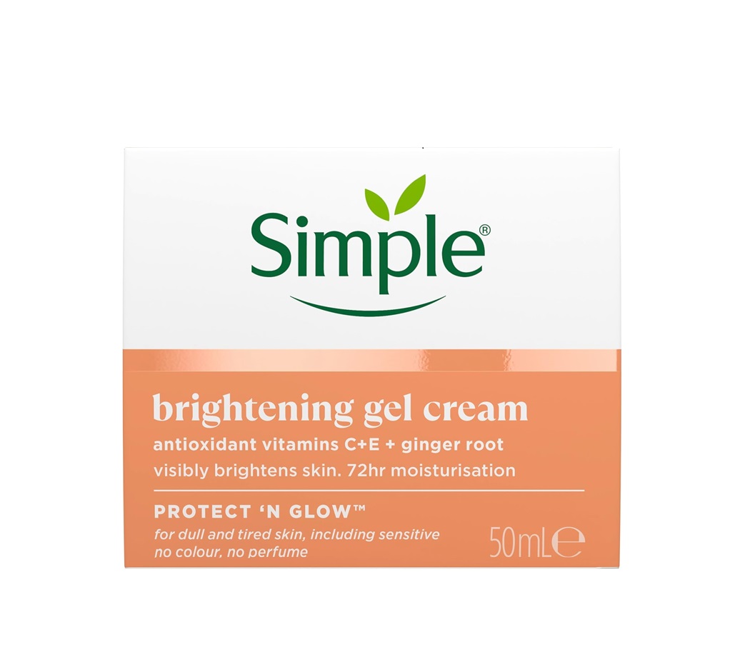 Revive dull, tired skin with Simple Protect ‘N Glow™ Brightening Gel Cream, a refreshing, lightweight moisturizer powered by antioxidant vitamins C + E and Ginger Root Extract.